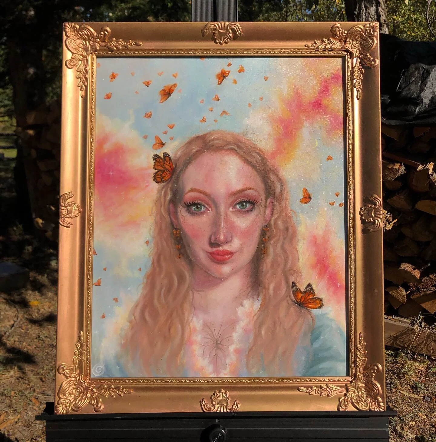 One night I had a dream. I was sitting in my studio painting this magnificent being, with the tiniest of brushes. I made one final stroke on the cheek of this woman, sat back in my chair, and suddenly I watched the piece evolve. From a painting to a living breathing earthling. Her eyes glimmered with life. She ran her fingers through her hair and played with the butterflies dangling from her ears - she was alive and I was witnessing the moment she came to be. She looked at me and said, “That took you long enough,” and I woke up. From that moment and to today, I remember the way she looked at me and how she gave me what I needed to finish the piece - vision.